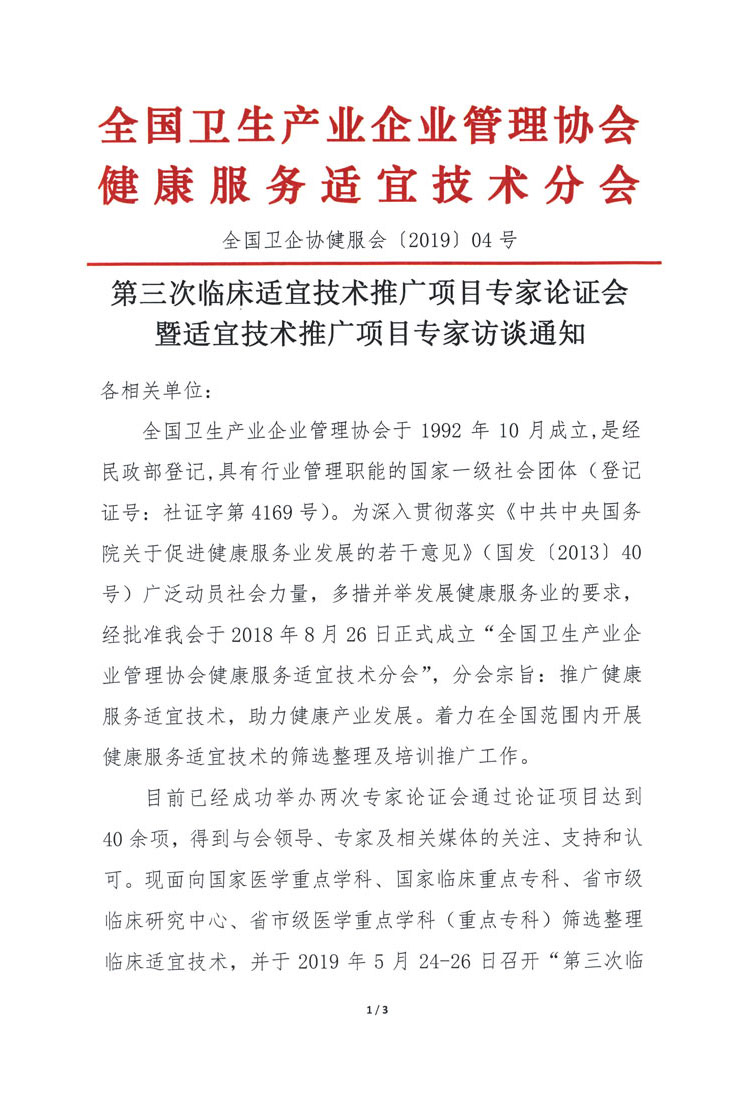 感谢关注全国卫生产业企业管理协会卫生健康适宜技术分会官网