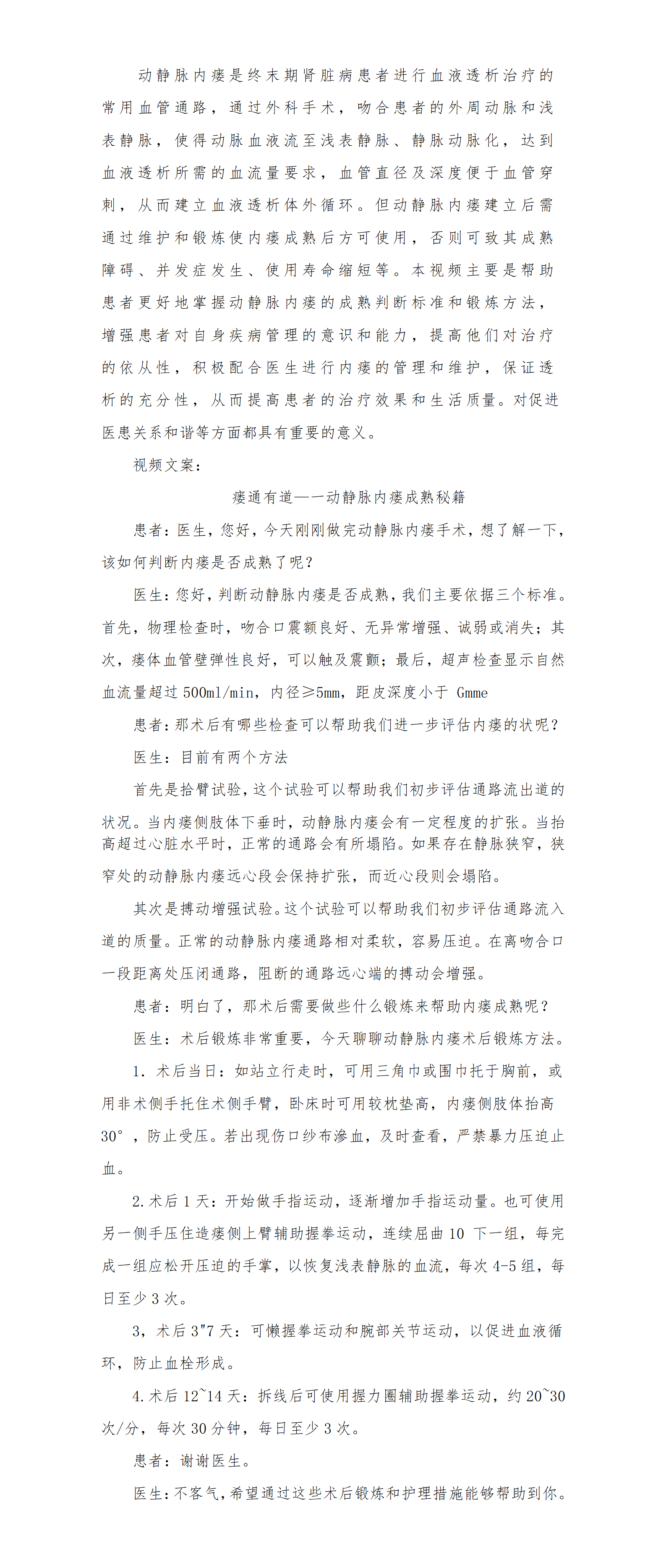 当前位置:首页 > 健康科普 瘘通有道---动静脉内瘘成熟秘籍