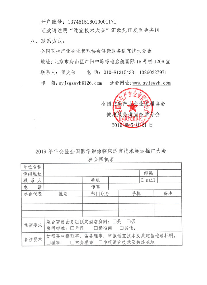 全国卫生产业企业管理协会健康服务适宜技术分会2019年年会暨全国医学影像临床适宜技术展示推广大会通知