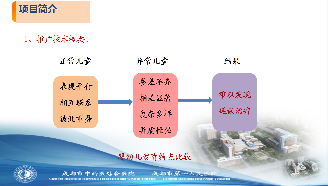 该技术操作简便快速,具有较高的敏感度,较为简单、实用、有效,故对人员资质无特殊要求,各级医疗机构从事儿童保健、儿科、儿童康复的相关工作人员,包括医生和护士均可学习。同时对医疗机构等级及开展场地均无特殊要求,方便开展及普及。设备方面仅需购买0~6岁儿童智能发育筛查工具箱即可,价格便宜,花费低。