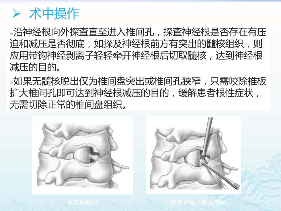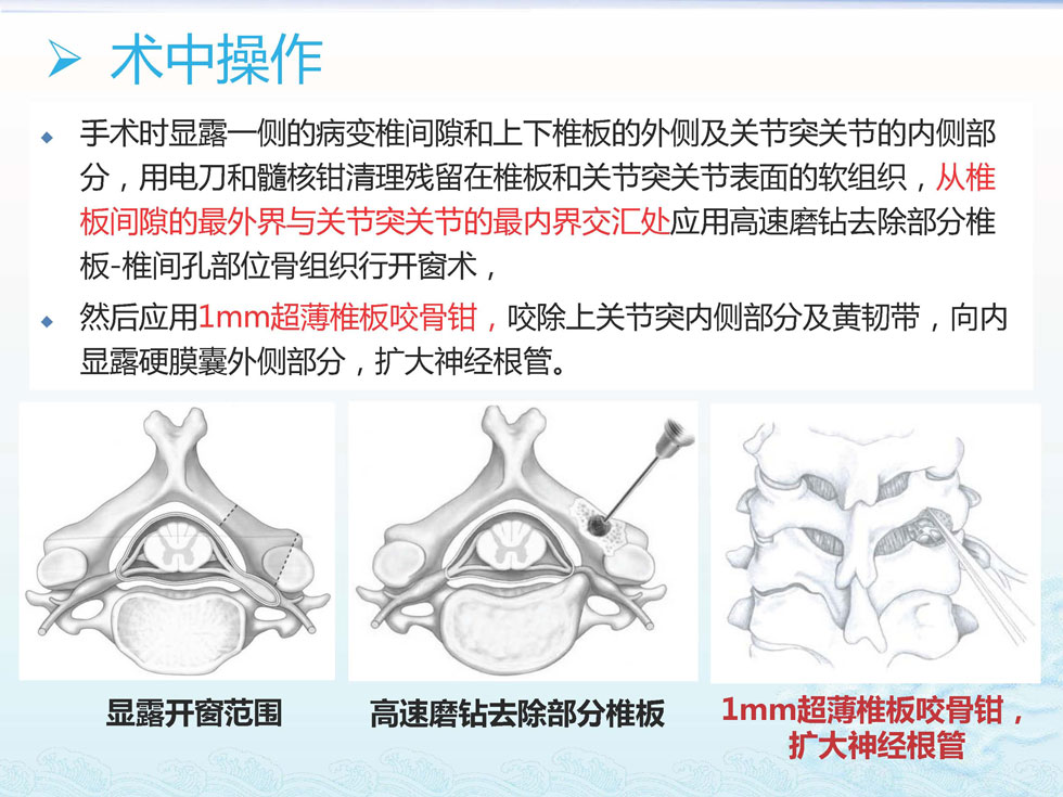 1. 所推广的技术内容:神经根型颈椎病的微创手术治疗——颈后路可扩张通道下钥匙孔减压术。